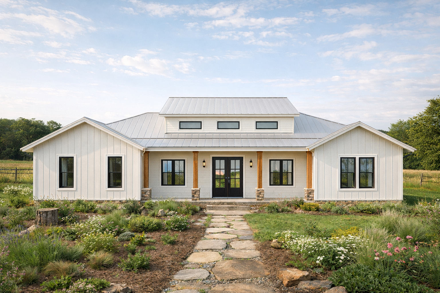 Brentwood Barn Barndominium House Plan - 100x36, 2310 SF, 4 Bed 3 Bath with 3-Car Garage